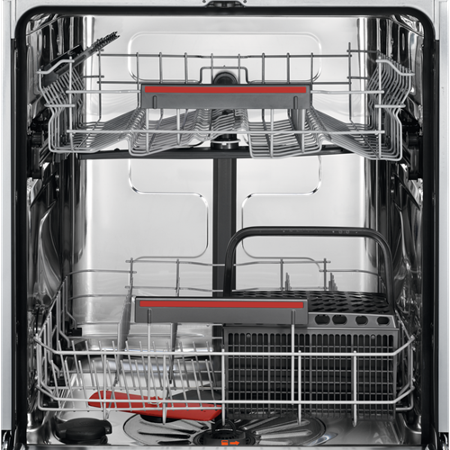 - Dolní košík má 4 rozložitelné talířové poličky, plastové barevné madlo