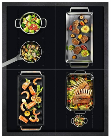 U této indukční desky se varné zóny automaticky přizpůsobí tvaru a velikosti vašich hrnců a pánví. Díky tomu se bude jídlo připravovat rovnoměrně bez ohledu na to, kde je nádobí umístěno.