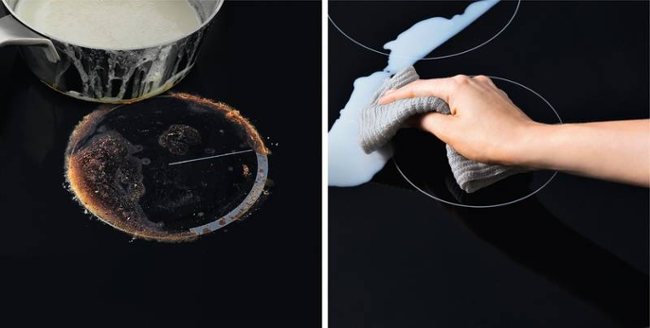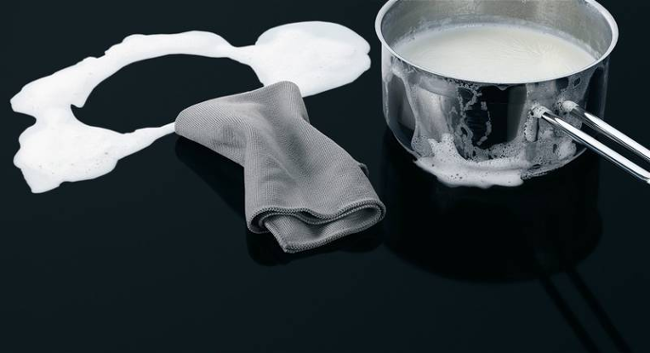 Povrch varné desky je zcela hladký a odolný vůči poškrábání. Plocha kolem pánve navíc zůstává chladná, a proto se tekutiny ani zbytky jídla nepřipálí. Stačí je jen setřít a deska bude opět jako nová.