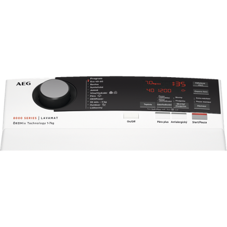 - Funkce: zap./vyp., Steam + Led, Anti-Allergy + Led, start/pauza, Temp Selection, výběr otáček, Stains/Pw, máchání, úspora času, odložený start