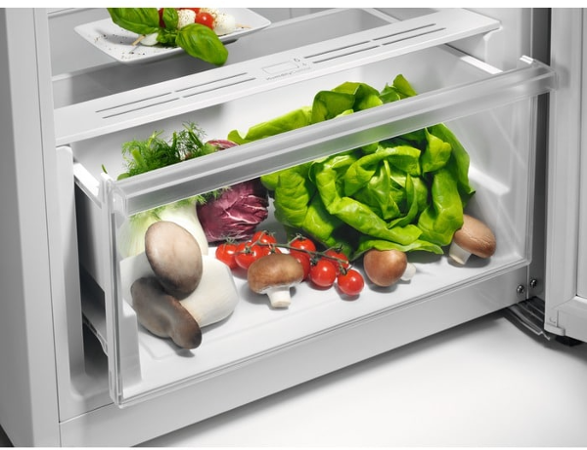 Prostorná zásuvka na zeleninu pojme dlouhé i objemné kusy zeleniny. Snadno se do ní vejde veškerá čerstvá zelenina, od salátových okurek přes jarní cibulku až po celer.