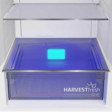 Světelný režim přihrádky HarvestFresh™ kopíruje střídání slunečního světla a tmy během celého dne. To udrží v chodu přirozené procesy v ovoci a zelenině, takže se uchová více vitamínů i chuti, než kdyby byly jen zavřené ve tmě. Uskladněné ovoce a zelenina tak brzy nevadne, nezkazí se dříve, než se sní, a ulehčí časté nakupování.