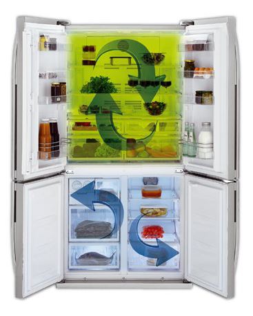Moderní chladící NO FROST technologie, která poskytuje ideální úroveň vlhkosti a teploty a zajišťuje ty nejlepší podmínky pro uchování potravin. Díky oddělenému systému chlazení a cirkulace vzduchu v chladničce a mrazničce zůstávají potraviny déle čerstvé.