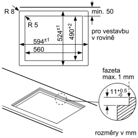 - Rozměry pro instalaci: (V x Š x H) 45 mm x 560 mm x 480 mm