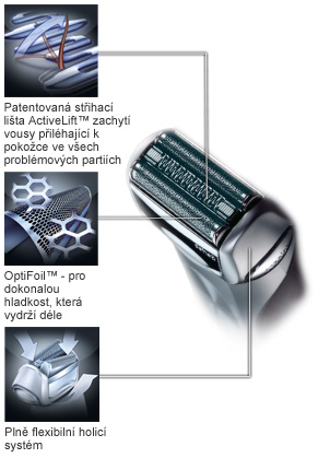 OptiFoil™ je nejpokročilejší holicí planžeta od Brauna. Její jedinečná geometrie s ergonomicky tvarovanými otvory umožňuje zachytit více vousů a oholit je důkladněji než kdy předtím. Braun má za sebou více než 50 let zkušeností s vývojem holicích planžet, které završuje naše jedinečná OptiFoil™.