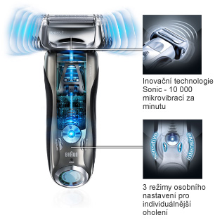 Series 7 je jediný holicí strojek na světě, který automaticky zhodnotí vaši tvář a přizpůsobí sílu svých 10 000 mikrovibrací hustotě vašich vousů. Revoluční technologie pro nejdůkladnější oholení od Brauna.