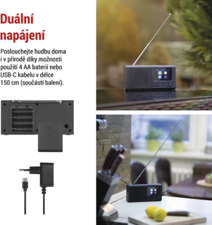 Díky citlivému tuneru naladíte stanice i v odlehlých oblastech a kompaktní design umožňuje vzít rádio kamkoli s sebou.