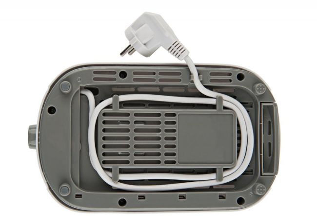- Tato praktická vyjímatelná zásuvka slouží pro vysypání drobečků. Topinkovač je vybaven prostorem pro navinutí napájecího kabelu.