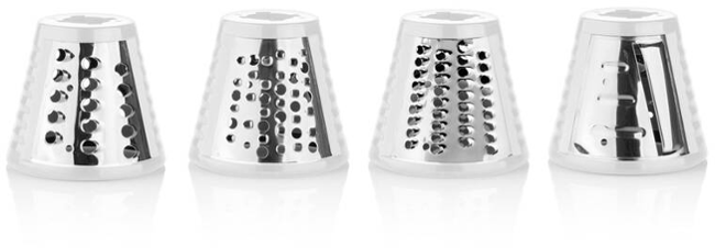 Nesmíme zapomenout na strouhací nástavec se 4 struhadly, který vám usnadní strouhání zeleniny, sýrů či staršího pečiva na strouhanku. Příprava oblíbených bramboráků nebo salátu coleslaw tak bude téměř bez práce.