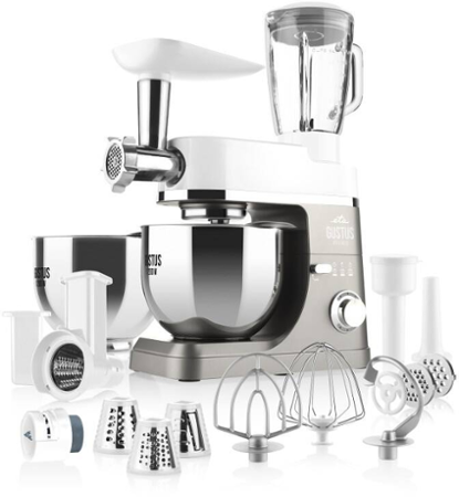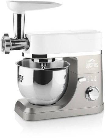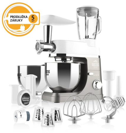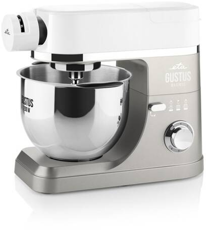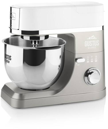 Kuchyňský robot ETA Gustus IV Maximus s výkonným 1200 W motorem je jako stvořený pro práci v kuchyni. Pochlubit se může stabilizátorem, který udrží nastavené otáčky i při velkém zatížení a pohání jej odolná kovová převodová kola, díky kterým s vámi bude opravdu dlouho.