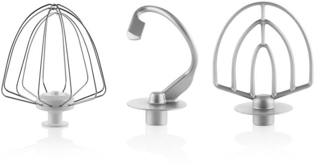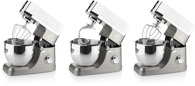 Mezi příslušenstvím najdete také 3 druhy nástavců – šlehací, mísicí metla a hnětací hák. Hutné těsto na chleba i dokonale nadýchanou šlehačku máte hotovou raz dva.
