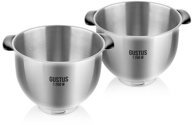 ETA Gustus IV Maximus vás hned na začátku překvapí dvěma nerezovými mísami s objemem 5,5 litru (až 2,5 kg těsta). Můžete tak pohodlně uhníst těsto, nechat ho přímo v míse odpočinout a mezitím ve druhé ušlehat krém či šlehačku.