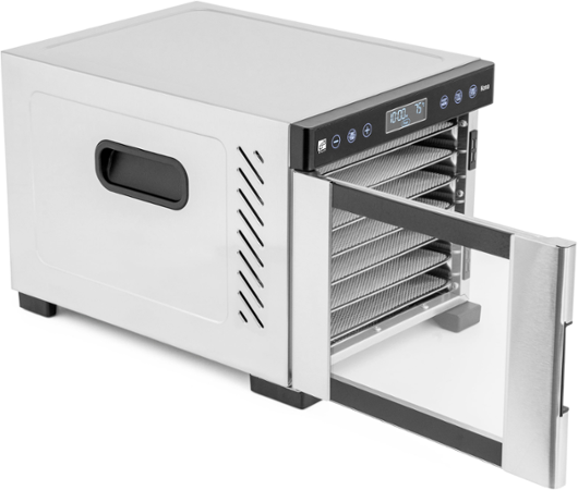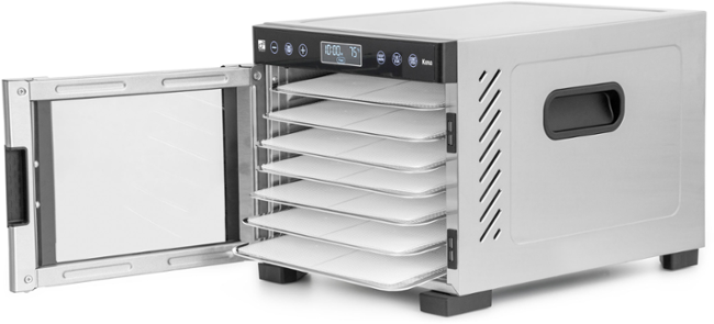 Řídící jednotka sušičky G21 Kona má dokonale řešenou elektroniku, ovládání je intuitivní a snadné. Časovač hlídá dobu přípravy a po skončení sušení sušičku sám vypne. Velkou výhodou je funkce KEEP WARM pro udržení teploty i po skončení sušení. Díky této funkci sušička s minimálním výkonem udrží teplotu 35 °C po dobu 24 hodin. Pak se sama vypne. Regulátor teploty vám dává absolutní kontrolu nad sušicím procesem. Usušte si to, co chcete, přesně tak, jak to chcete.
