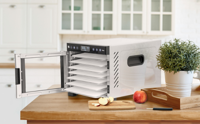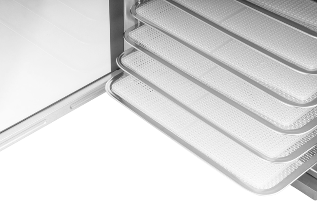 Všechny části, které přijdou do styku s potravinami, jsme vyrobili z nerezu, stejně jako nejčastěji používaná sušicí plata nebo vnější plášť. Z praktického domácího spotřebiče se tak stane i designový doplněk, který vkusně ladí s každým typem kuchyně. Péče o sušičku je navíc díky tomu i nenáročná a rychlá.