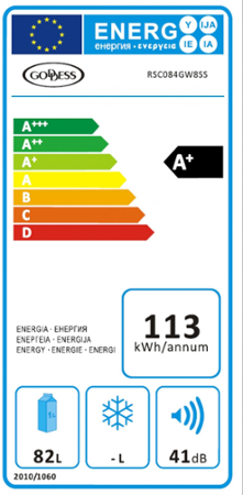 Goddess RSC084GW8SS je kompaktní jednodveřová chladnička s extra úzkým designem a malou hloubkou. Pracuje v úsporné energetické třídě A+, se spotřebou 0,3 kWh za 24 hodin, ročně 110 kWh a hlučností 41 dB. Chladnička o objemu 73 l je vybavena nastavitelnou skleněnou policí, průhledným šuplíkem a dvěma přihrádkami ve dveřích. Nepostrádá ani výparník o objemu 9 l pro krátkodobé uchovávání mírně zmrazených potravin. Ustavení a vyrovnání usnadní výškově nastavitelné nožky i dveře se zaměnitelným otevíráním.