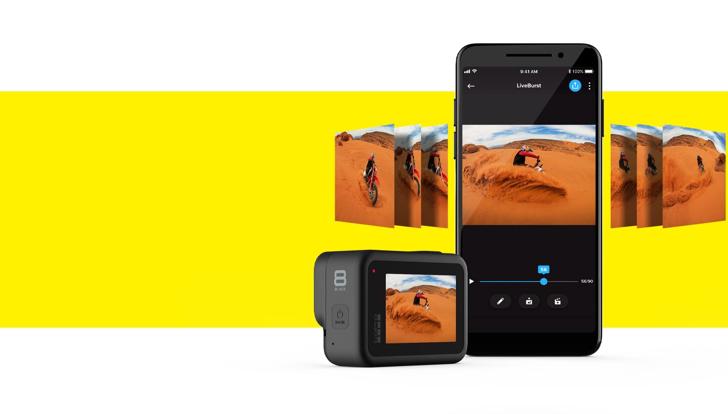 LiveBurst zaznamenává 1,5 vteřiny před a po stisknutí spouště. Můžeš si proto vybrat z 90 statických snímků nebo sdílet krátký 4K klip.