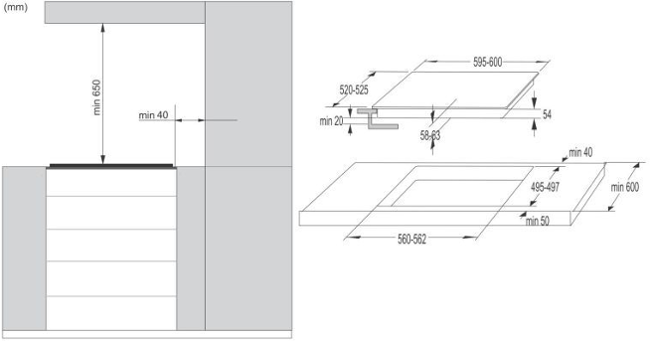 Rozměry pro zabudování (šxvxh) (min-max): 56-56,2 × 7,4 × 49 cm