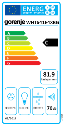 Komínový odsavač par Gorenje s dotykovým ovládáním a halogenovým osvětlením. Možnost odtahu a recirkulace. Maximální výkon odtahu 647 m3/h, 3 stupně výkonu. Energetická třída C.