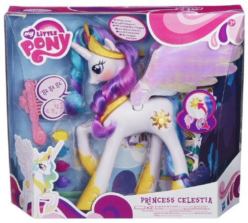 Princezna Celestia je krásný létající jednorožec Pegas, který vládne celému království poníků, jménem Equestria. Je vysoká 20 cm, její křídla svítí a pohybují se nahoru a dolů. Dlouhá, vícebarevná hříva a oháňka se perfektně hodí pro stále nové a nové úpravy.
