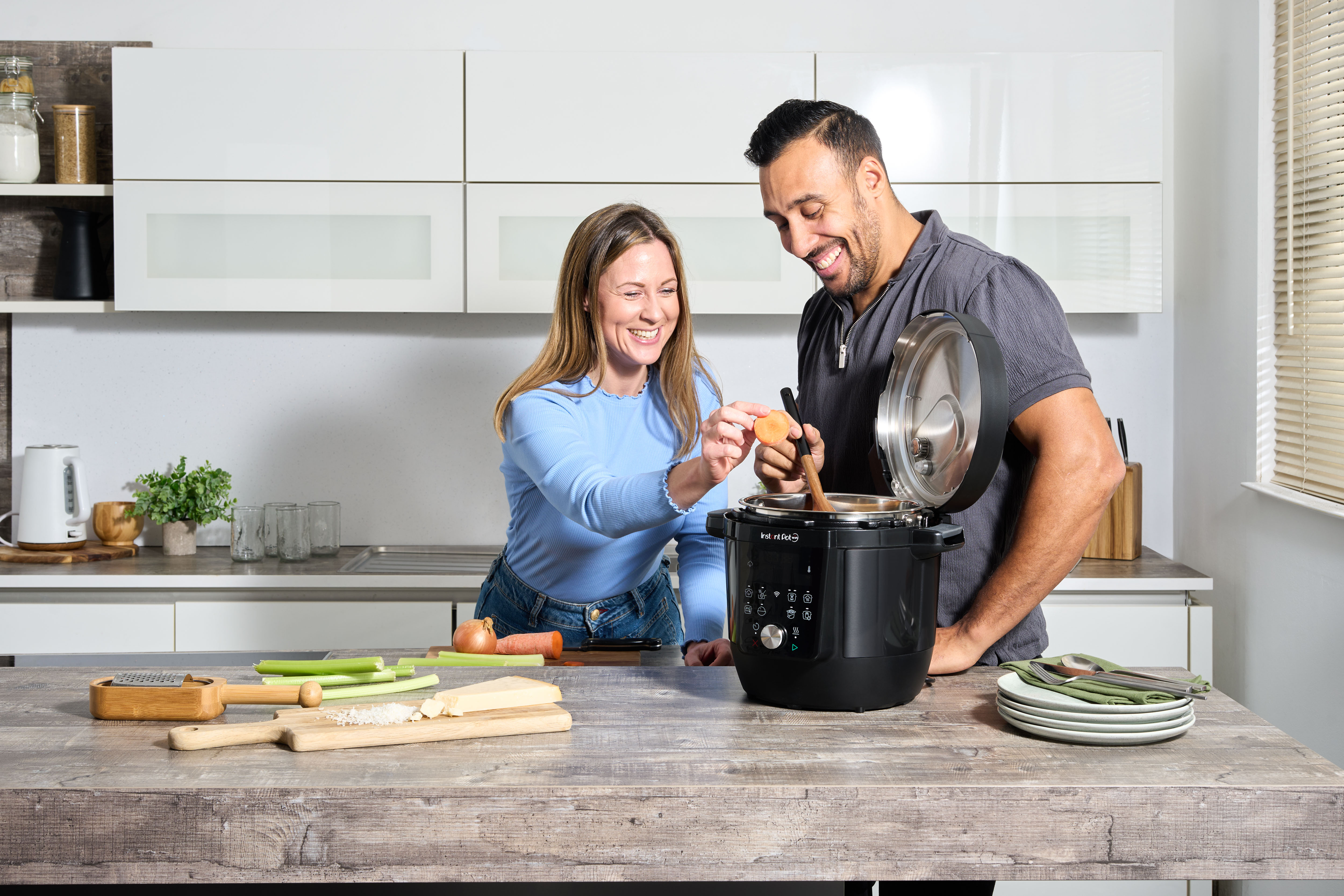 Představujeme Instant Pot Plus – revoluční chytrý pomocník, který promění každodenní vaření v rychlou, pohodlnou a radostnou činnost. Navržen pro všechny životní situace – od těhotenských chutí přes příkrmy pro nejmenší až po velké rodinné večeře. S funkcí ovládání přes aplikaci Instant Connect™ je vaření ještě pohodlnější než kdy dřív – protože kdo by nechtěl spustit večeři z pohodlí pohovky?