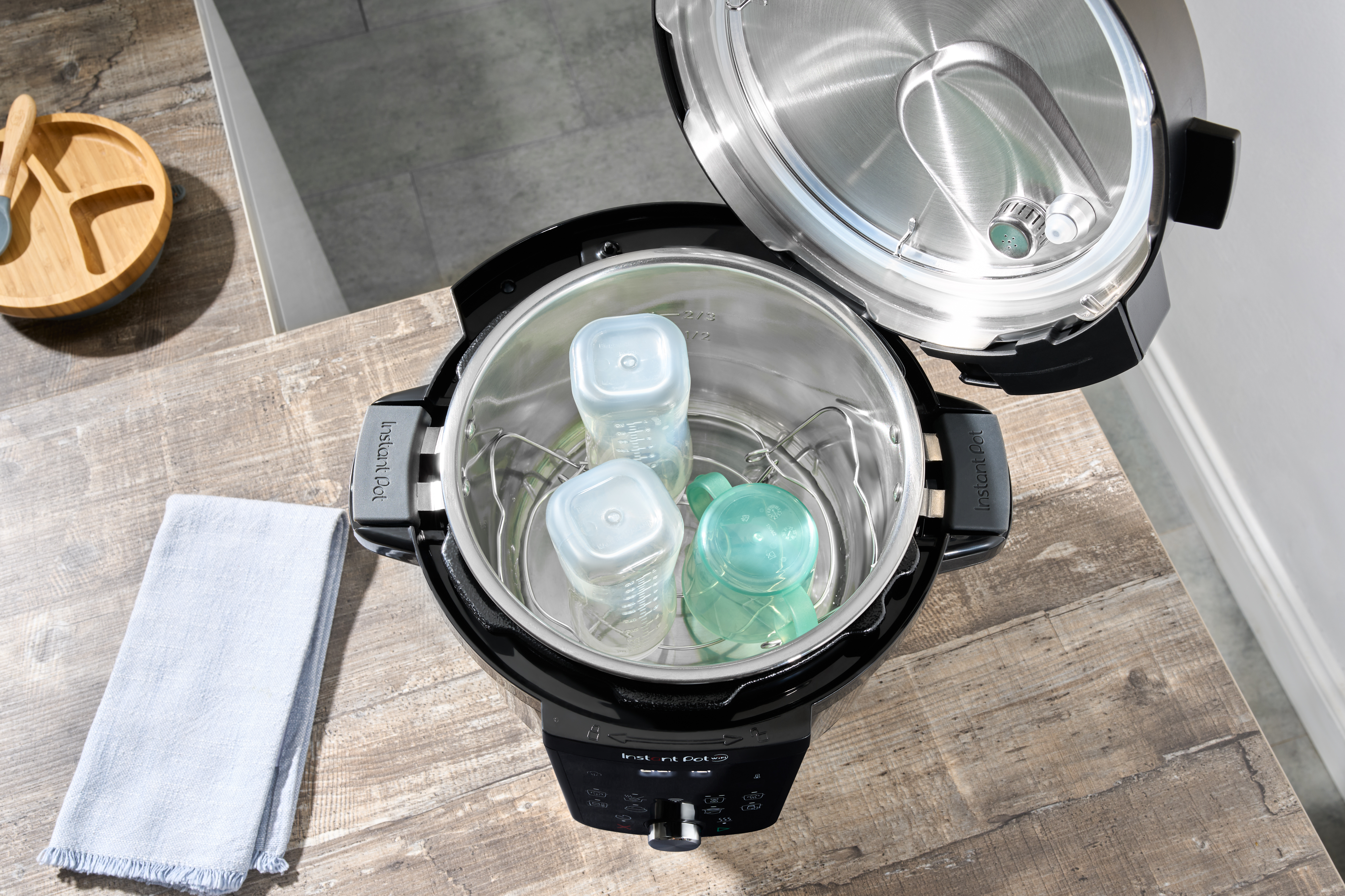 Instant Pot Plus není jen o jídle – s funkcí sterilizace rychle a spolehlivě vydezinfikujete dětské lahvičky, dudlíky, odsávačky nebo zavařovací sklenice. Mít doma takového pomocníka znamená klid v duši i v kuchyni.