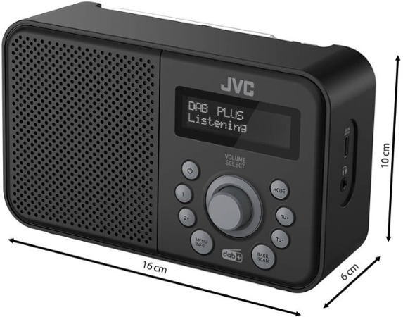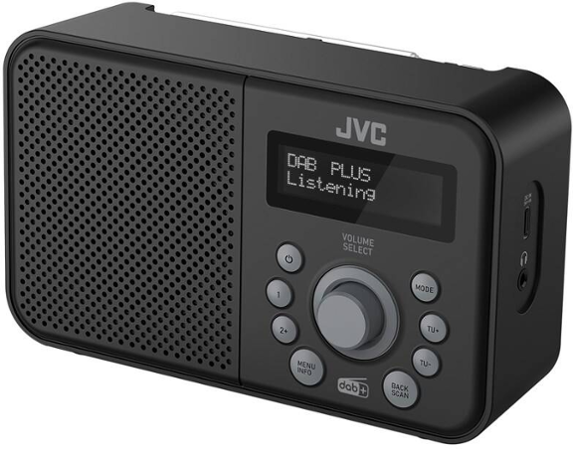 Radiopřijímač JVC RA-E313B DAB umožňuje poslech oblíbené DAB+ nebo FM stanice kdekoliv, kde potřebujete. V obou případech lze do paměti přístroje uložit až 40 předvoleb.