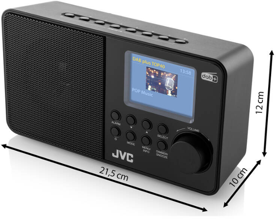 Radiopřijímač JVC RA-E611B DAB zaujme na první pohled přehledným 2,8“ barevným displejem. Díky němu budete mít dokonalý přehled o všech funkcích. Přijímač nabízí digitální tuner jak pro DAB+, tak i FM pásmo. V obou případech lze do paměti přístroje uložit až 30 předvoleb.