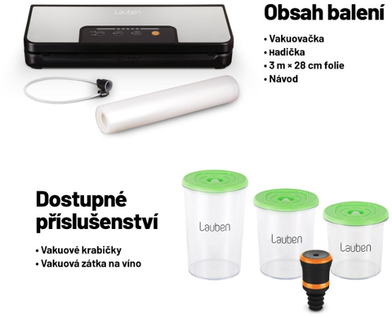Věděli jste, že většina vyhozeného jídla pochází z domácností? Situaci, kdy se nám nepodaří včas spotřebovat vše, co máme v lednici a musíme zbytečně vyhazovat jídlo, známe asi všichni. Jednoduchým a zároveň velmi efektivním řešením je vakuování. Díky vakuovačce Lauben Vacuum Sealer 60SB až pětinásobně prodloužíte trvanlivost potravin. Metoda vakuování totiž díky odsátí kyslíku pomocí vakuovačky výrazně zpomaluje proces oxidace, při kterém se potraviny kazí. S Lauben Vacuum Sealer 60SB docílíte delší životnosti potravin a zabráníte negativním vlivům působení vlhkosti ve své lednici, které způsobují změny barev, chutí, a především celkové kvality vašich potravin. Jídlo vám díky zavakuování do speciální folie, která je součástí balení, v lednici nebo mrazáku vydrží mnohem déle. Ušetříte čas a vyhnete se nepříjemnému a zbytečnému plýtvání. Celý proces je velmi jednoduchý, k ovládání vakuovačky slouží pouze čtyři tlačítka. Vakuovačka pro vás rovněž bude skvělým pomocníkem, chcete-li si osvojit oblíbenou metodu sous vide vaření nebo si předpřipravit třeba steaky či burgery pro případ nečekané návštěvy.