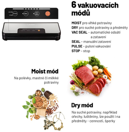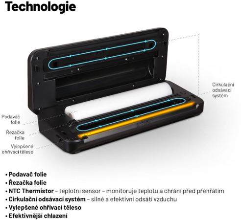 Postará se o bezpečný provoz a v případě přehřátí vakuovačku vypne.