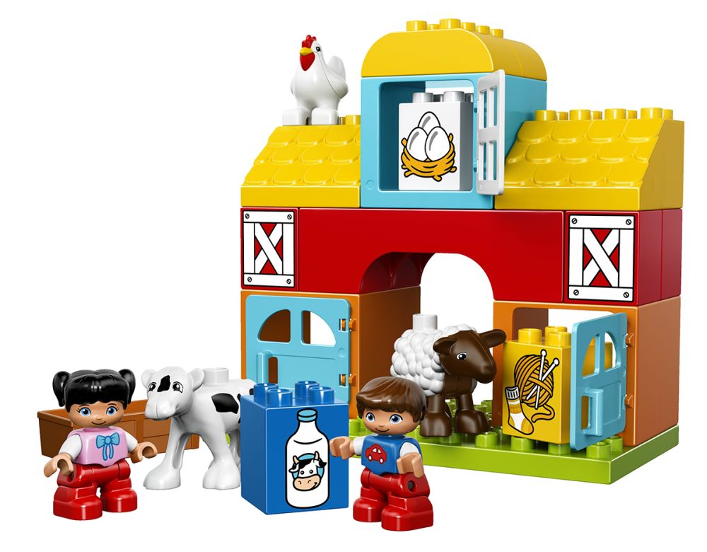 Pohraj si na farmě a zároveň se něco nauč! Sada LEGO Duplo Moje první farma obsahuje velké a masivní kostky, a proto je skvělou první volbou pro začínající stavitele. Jasně barevné kostky LEGO Duplo jsou pro děti bezpečné a přesně padnou do jejich malých rukou. Pomocí figurek zvířat a speciálních kostek s obrázky seznamte svého malého farmáře s životem na farmě – povídejte si o tom, jak dělají jednotlivá zvířátka a jaký z nich máme užitek. Tuto snadno sestavitelnou sadu můžete využít k hravému učení svého dítěte a seznámit ho pomocí 2 figurek LEGO Duplo se životem na farmě. Sadu je možné zkombinovat s modelem 10615 LEGO Duplo Můj první traktor a rozšířit tak herní možnosti. Sada obsahuje 2 figurky dětí LEGO Duplo, ovečku, kravičku a kuřátko.