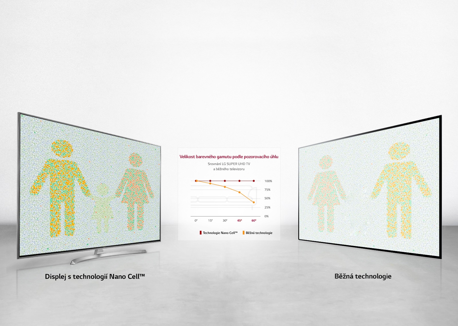 Displej s technologií Nano Cell zlepšuje konzistentnost barev při sledování ze strany. Nemusíte se tak obávat zkreslení barev v důsledku velkého pozorovacího úhlu.