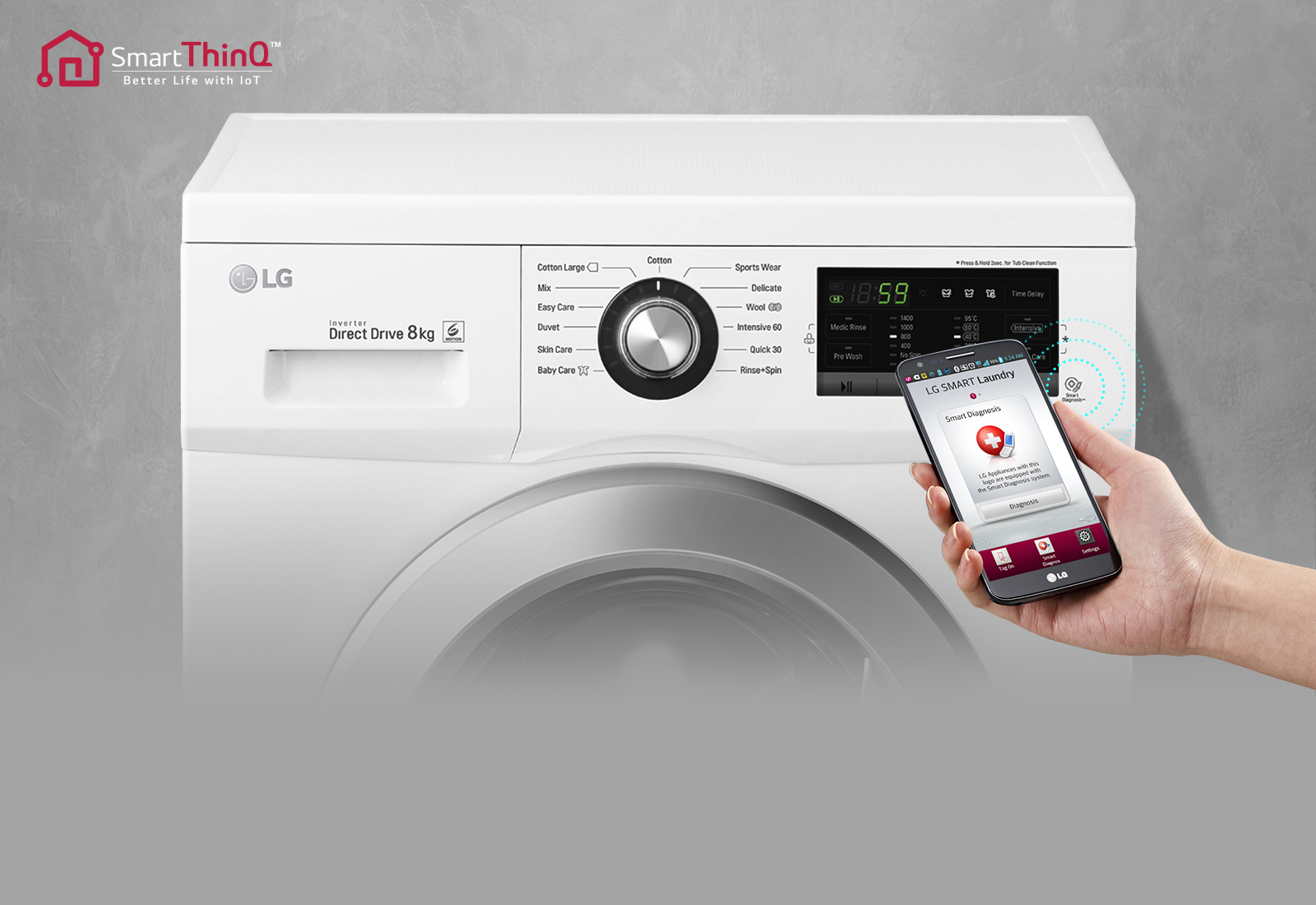 LG Smart Diagnosis (inteligentní diagnostika) snadno a rychle řeší problémy bez nutnosti volat hned servisního technika. Jednoduše zavolejte zákaznickou linku společnosti LG a položte telefon na spotřebič. Ten pak bude komunikovat s počítačem, který během několika sekund stanoví diagnózu a okamžitě nabídne řešení.