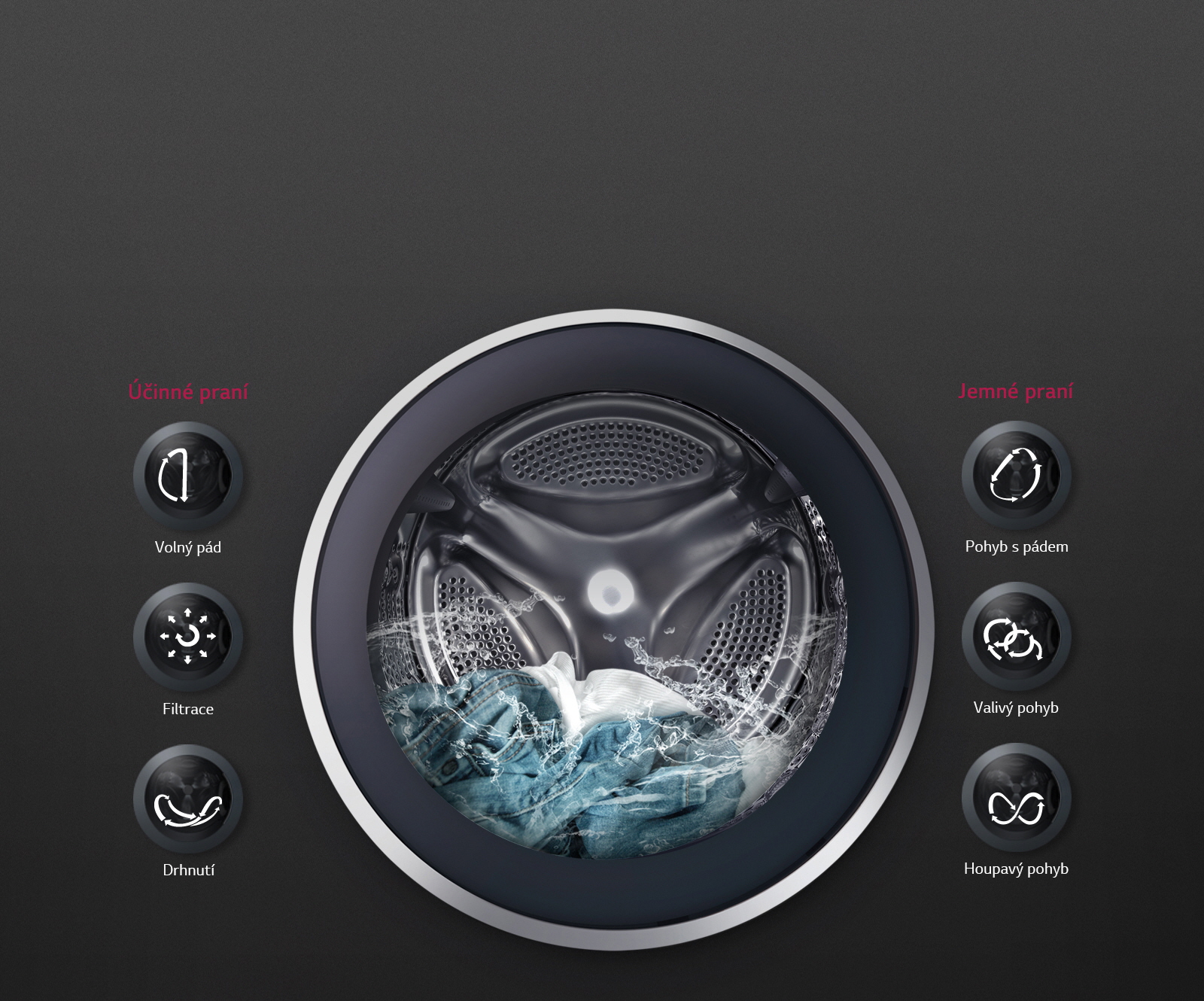 Technologie 6 Motion Direct Drive přináší optimální kombinaci pracích pohybů pro různé typy textilií. To zaručuje vysoký výkon praní s šetrnost k látkám, které se tak méně ničí.