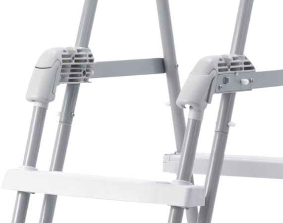 Schůdky mají odnímatelná stupátka - při jejich odnětí zamezíte nekontrolovatelnému vstupu dětí do bazénu.