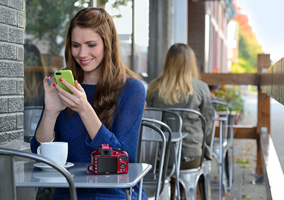 Vystupte ze zástupu využívajícího chytré telefony sdílením vysoce kvalitních snímků! Použijte volitelný bezdrátový mobilní adaptér Nikon WU-1a* pro přenos snímků z fotoaparátu D3300 prostřednictvím chytrého zařízení.