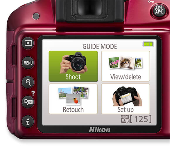 Režim Průvodce vám pomocí vzorových obrázků a jasných pokynů krok za krokem přesně ukáže, jak pořídit vynikající snímky a videosekvence.