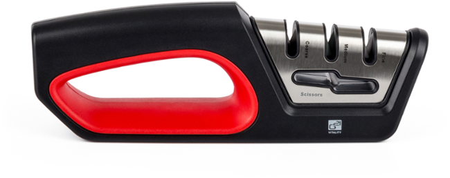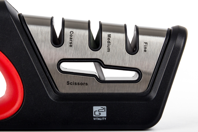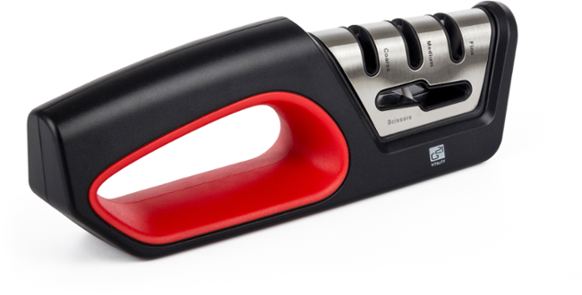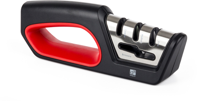 Multifunkční třístupňový ostřič nožů a nůžek je z odolného materiálu, s ergonomicky tvarovaným tělem a protiskluzovým dnem. Jeho použití je proto snadné a bezpečné.