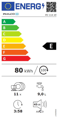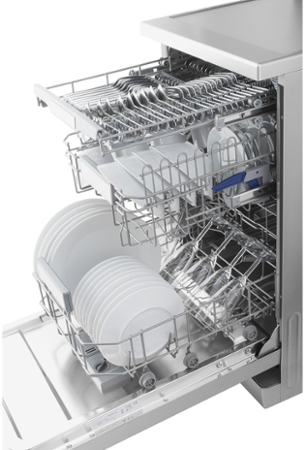 Volně stojící myčka nádobí, en. třída E, 11 sad nádobí, hlučnost 45 dB, 6 programů, nerez