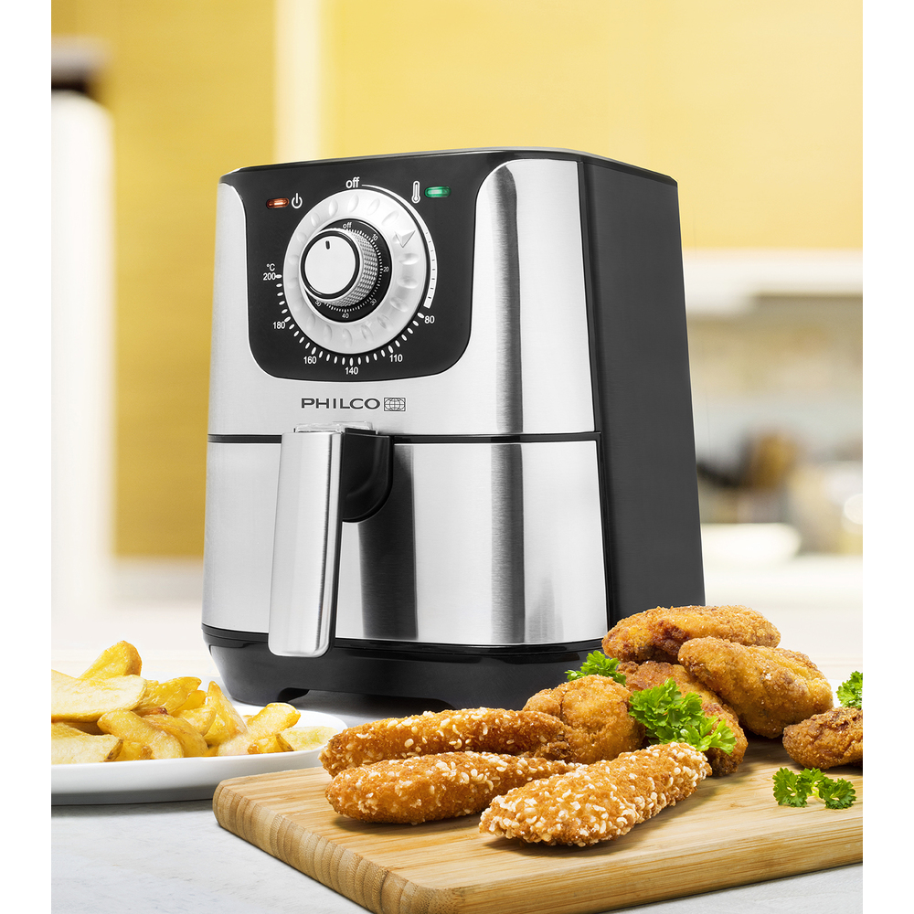 Jídlo připravované v horkovzdušné fritéze Philco PHAF3500 obsahuje až o 85 % méně tuku než tradičně smažené jídlo a to bez ztráty delikátní chuti a křupavosti. Cyklonový ohřev připraví váš pokrm mnohem rychleji než v troubě a s minimálním množstvím oleje. Uživatelsky přívětivý design s indikátory provozu a otočnými ovladači zajistí, že nikdy nebudete mít problém nastavit vaření, jak chcete vy. Navíc kompaktní rozměry spotřebiče Vám umožní jej mít neustále při ruce ať už na kuchyňské lince nebo v blízké skříňce. Výhodou je i snadná údržba. Vyjímatelné části horkovzdušné fritézy je množné mýt v myčce. Díky nepřilnavé vrstvě nebude problém ani umýt tyto části snadno teplou vodou s trochou saponátu. A co v horkovzdušné troubě můžete připravit? Téměř cokoliv. Určitě vyzkoušejte hranolky, steaky, zeleninu, ryby, mořské plody, kuře nebo sladké dezerty.