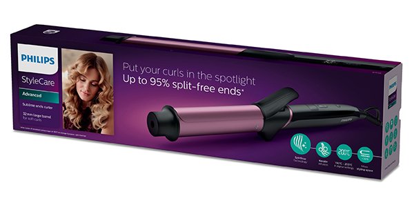Naším tajemstvím k dokonalé prevenci roztřepených konečků je nová technologie SplitStop. Jedná se o unikátní kombinaci teplotního výkonu a minimální míry tření, která dbá o zdraví vašich vlasů od kořínků po konečky. Nedochází u ní k žádným změnám teploty, díky čemuž během použití dosahuje optimálního rozložení tepla ve válci. Válec je potažen hladkou keramickou vrstvou, která snižuje tření na pramenech vlasů. Vytvořte si dokonalé lokny se zdravějšími konečky, které jsou plné nového života.