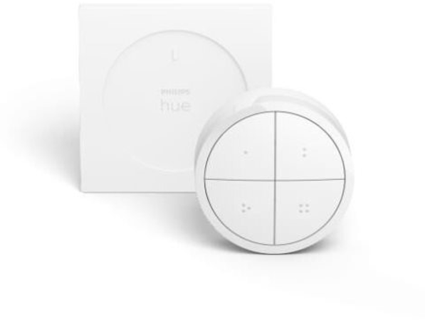 Otočný vypínač Tap z kolekce Philips Hue pro snadný přístup ke světelným scénám vašeho domácího osvětlení Philips Hue. Každým tlačítkem můžete ovládat až tři místnosti nebo zóny, otáčením vnějšího prstence měníte jas světla. Vypínač je možné připevnit na zeď pomocí lepicí pásky na zadní straně základny, položit na magnetický povrch nebo jej můžete využívat jako dálkové ovládání. Nastavení jednotlivých tlačítek je možné vybrat v mobilní aplikaci Philips Hue na kartě Nastavení. Tento ovladač je všestranným pomocníkem, který vám umožní ovládat svá svítidla odkudkoli v domácnosti a to bez telefonu či tabletu. Je zhotoven z kvalitního plastu v matně bílé barvě. Ovladač napájí CR knoflíková baterie - součástí balení je 1 ks baterie CR2032. Minimální životnost baterie činí 2 roky. Vzhledem k nízkému krytí IP20 je určen pouze pro vnitřní použití.