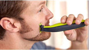 OneBlade neholí příliš nakrátko, takže nepodráždí pleť. Holte proti směru růstu a zbavte se jakkoli dlouhých vousů.