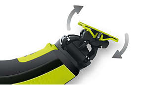 OneBlade kopíruje obrysy vaší tváře a umožňuje jednoduše a pohodlně zastřihovat a holit všechny části obličeje. Dodejte dvoustranným břitem svému vzhledu styl a pohybem břitu v kterémkoli směru vytvořte čisté linie.