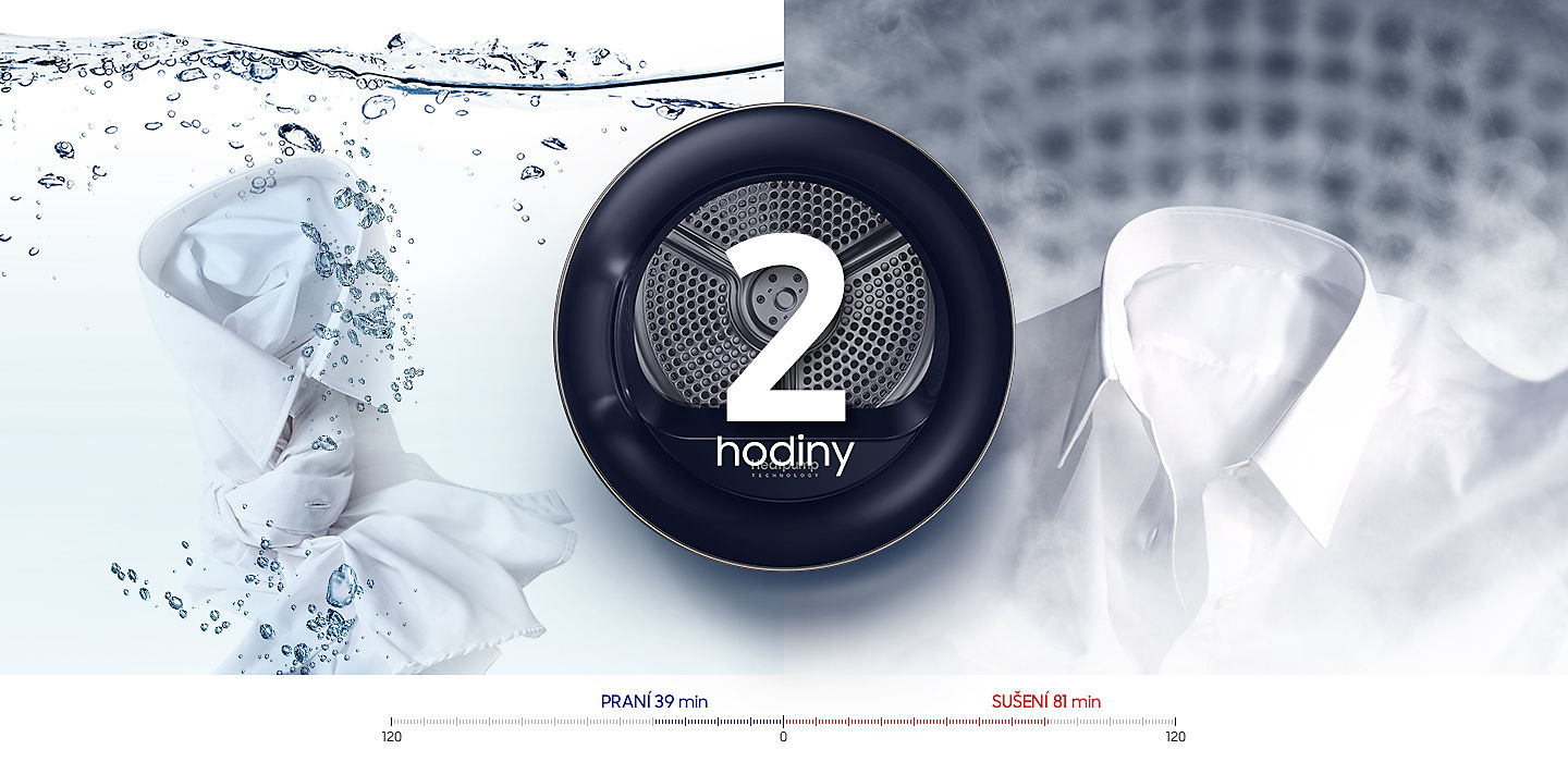 Mějte oblečení čisté a připravené k nošení za pouhé dvě hodiny. Cyklus Super Speed umožňuje usušit várku prádla složenou z bavlny a syntetiky během 81 minut. A použitím pračky s programem Super Speed můžete prát a odstředit prádlo už za 39 minut. Takže praní i se sušením vám zabere pouze dvě hodiny.