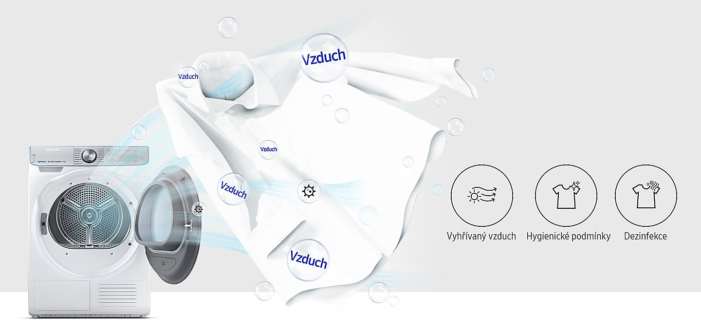 Obáváte se bakterií na vašem prádle? Cyklus Sanitize zajišťuje dezinfekci suchých i mokrých kusů oblečení* beze změny výkonu sušení. Eliminuje až 99,9 % bakterií a zárodků. Můžete tak jednoduše dezinfikovat své oděvy, bytový textil nebo třeba dětské hračky.