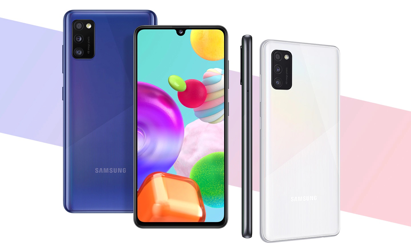 7,9 mm tenké tělo Galaxy A41 a ergonomicky zaoblená záda mu dodávají komfortní úchop umožňující snadné ovládání obrazovky. Nechte vyniknout svou osobnost a vyberte si z dynamických vzorů v barvách Prism Crush Black, Prism Crush White nebo Prism Crush Blue.