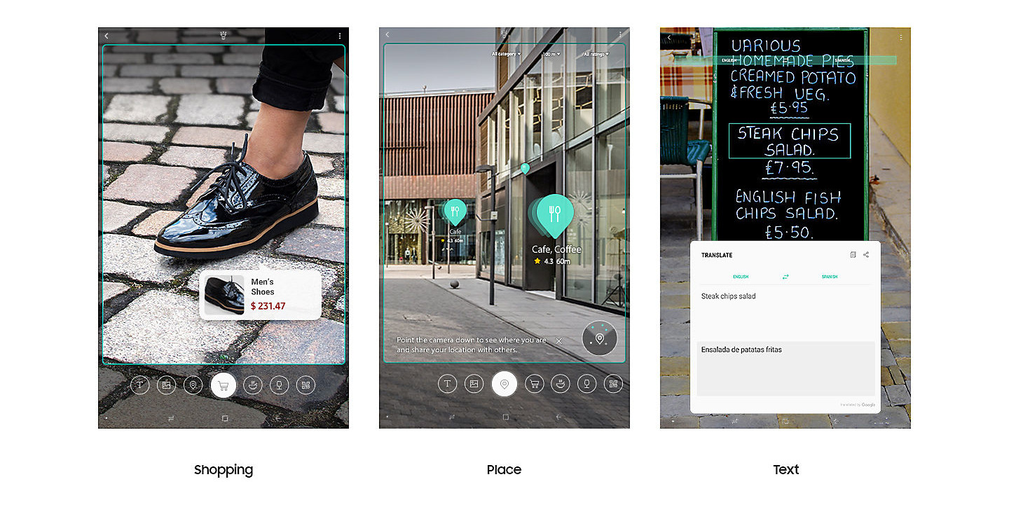 Využijte Bixby Vision a funkci Live Result k vyhledávání informací v reálném čase. Nakupujte zboží, které právě vidíte ve výloze obchodu, identifikujte památky nebo překládejte nápisy a jídelní lístky z cizího jazyka za pomoci ikony Bixby Vision v hledáčku fotoaparátu.