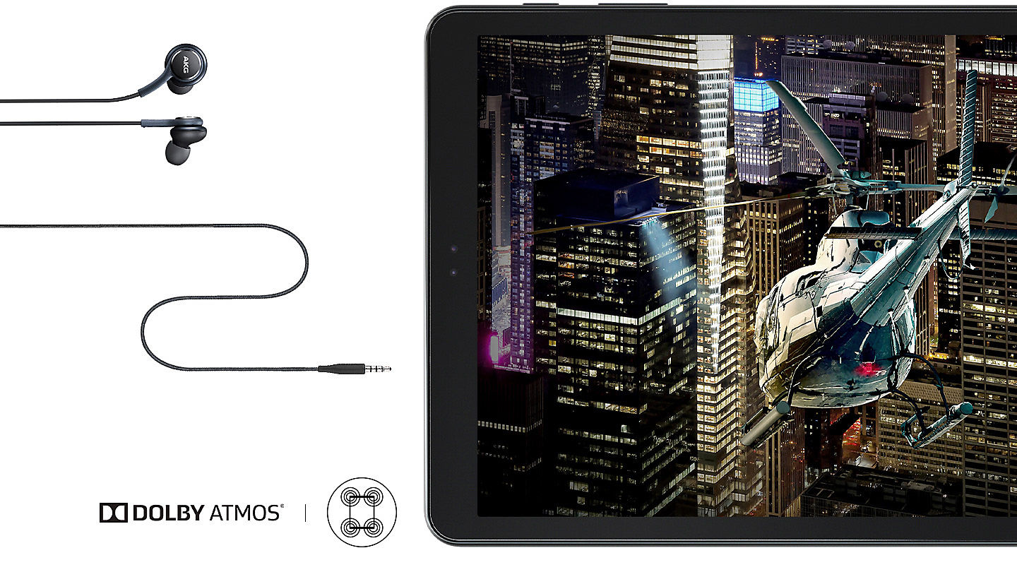 Zažijte novou dimenzi zvuku se čtyřmi reproduktory. Ty jsou umístěné v rozích tabletu a automaticky přizpůsobí nastavení stereo audia podle orientace obrazovky. A technologie Dolby Atmos vám poskytne ještě bohatší poslech s prostorovým zvukem.