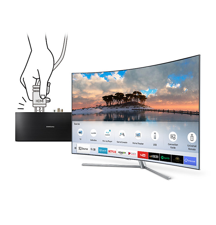 QLED TV snadno najde a rozpozná všechna vaše připojená zařízení. Televizor automaticky zobrazuje názvy zařízení, a tak je výběr toho správného otázkou velmi krátkého okamžiku.