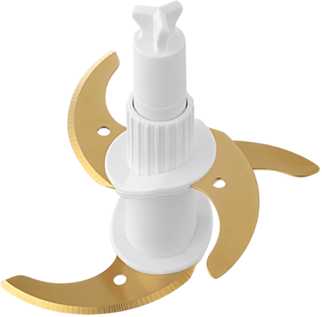 Nožová jednotka obsahuje 2 horní a 2 spodní čepele. S jejich pomocí jednoduše a efektivně nasekáte i tužší potraviny, které se jinak hůře zpracovávají. Sekací nože jsou vyrobeny z vysoce kvalitních materiálů a mají titanový povrch. Potraviny si tak zachovají maximum minerálních látek a vitamínů, což oceníte například u přípravy ovocných a zeleninových jídel.